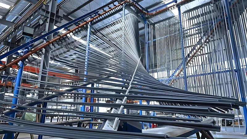 研究開発、設計、生産、販売、サービスを専門とする垂直統合型企業として、当社は16のアルミニウム押出生産ライン、複数の国際的に先進的な溶解炉、陽極酸化、着色、粉体塗装用の設備を備えています。この施設は、年間80,000トンの生産能力を持ち、さまざまな仕様のアルミニウム合金形材を生産することができます。